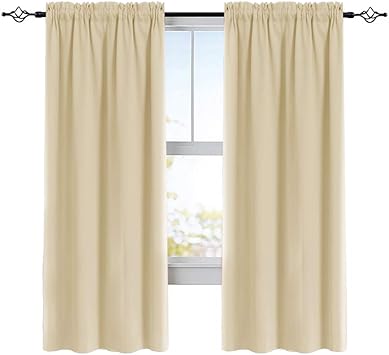 Rod Pocket Curtains For Bedroom Room Darkening French Door Curtains 72 Inches 2 Panels Beige